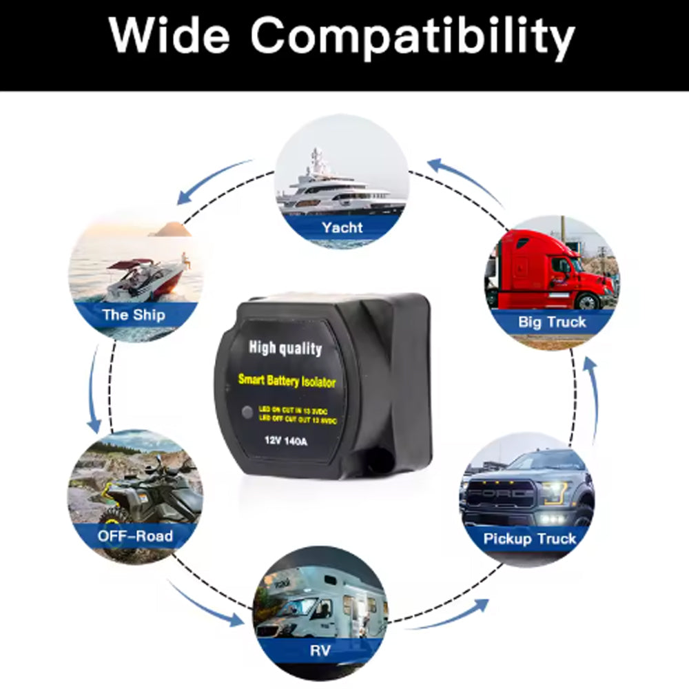 12V 140A Smart Battery Isolator with Voltage Display Voltage Sensitive Relay VSR