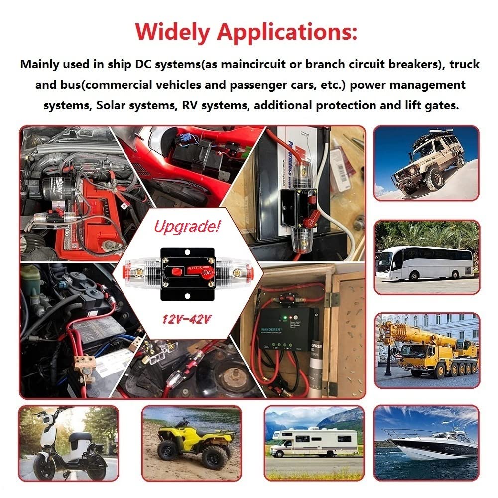 ★ Widely Application--- Typically used in solar system, inverter, car audio/video system, boat, trucks, buses, RV's, ATV winches, marine and DC sound amplifier system overload protection