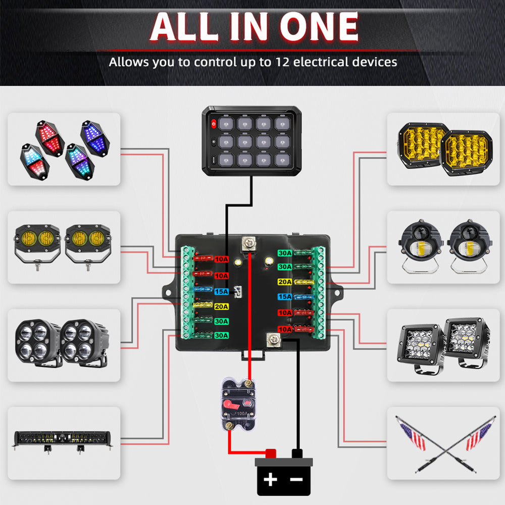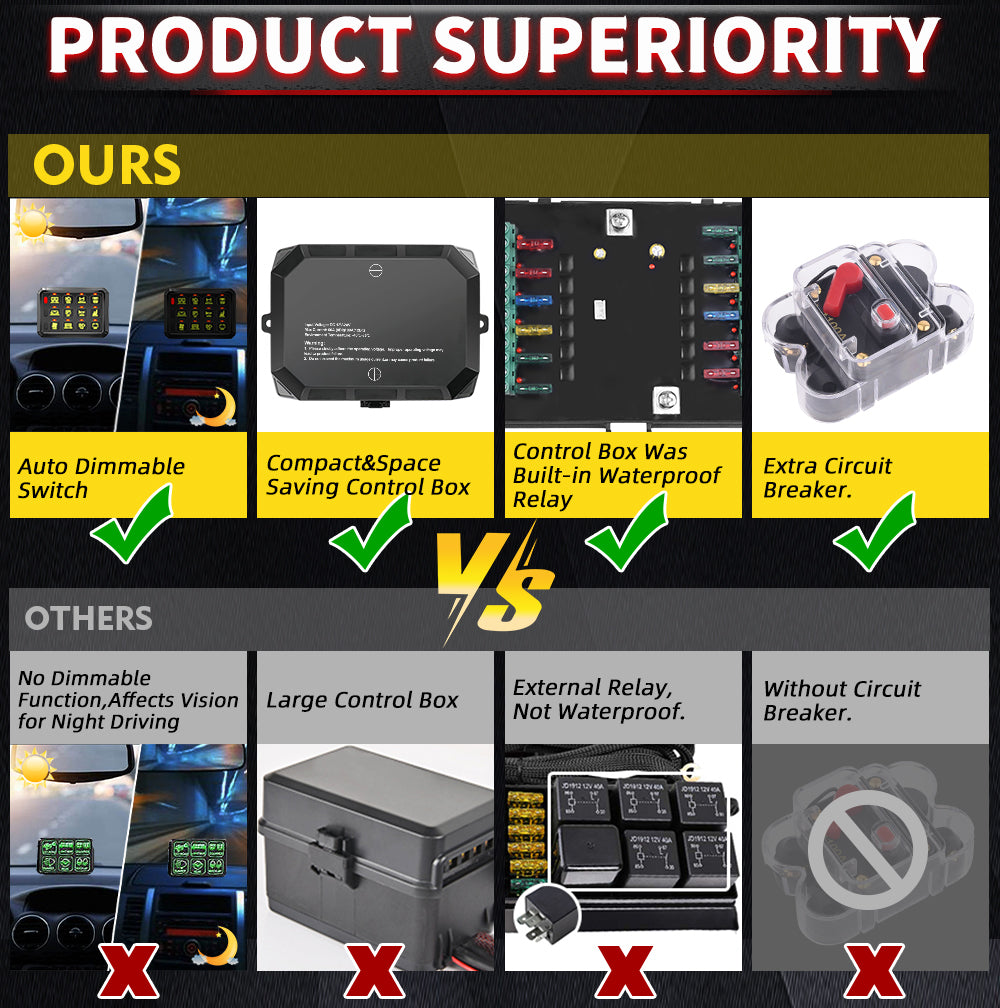 The red cable connects the master switch power cable to the ACC. If you want to light up the LED lamps before the car start-up, please connect the recommended because the higher the power is, the more the power of the battery will be consumed.