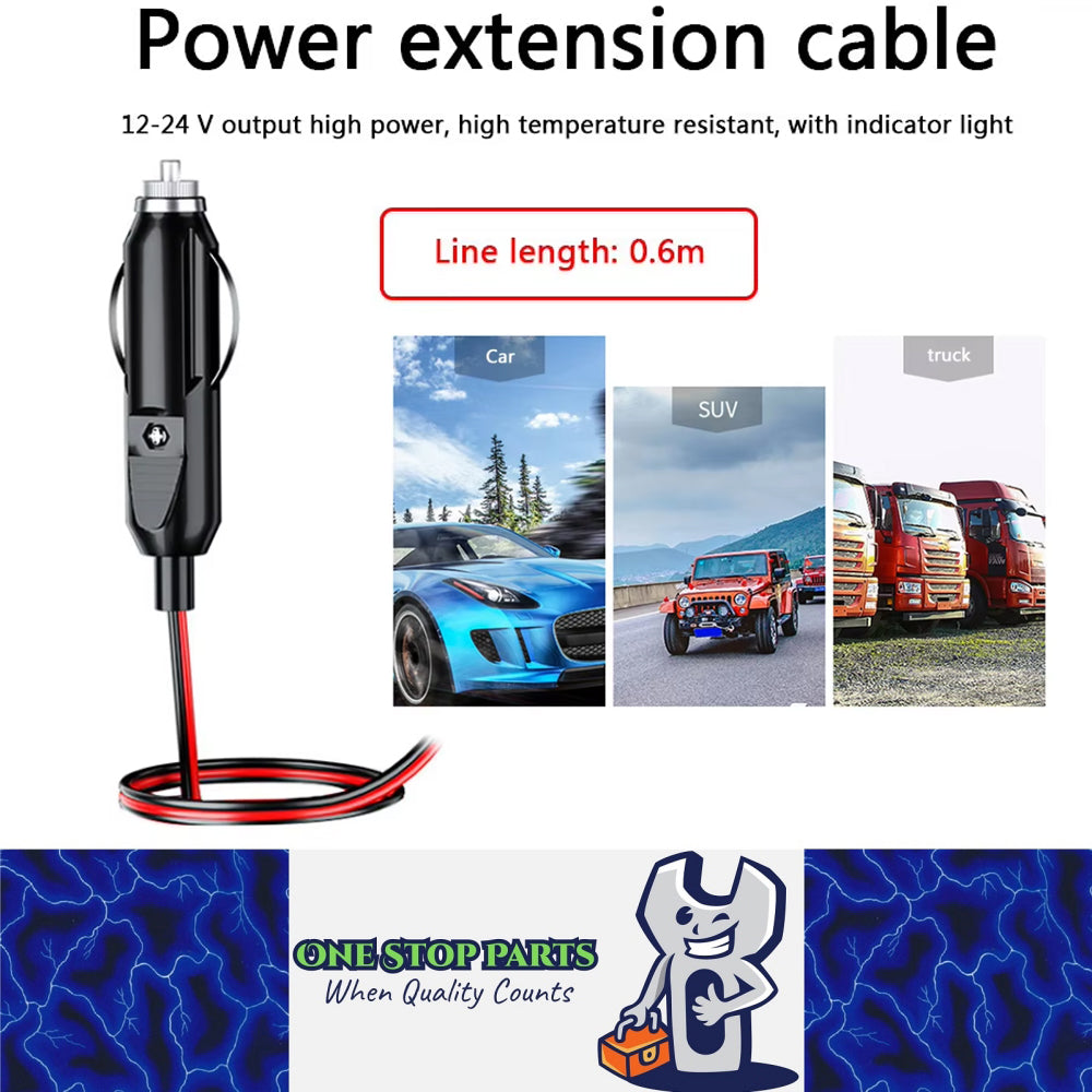 12V-24V Car Cigarette Lighter Plug Male Connector 20A Fused with 0.6M Wire