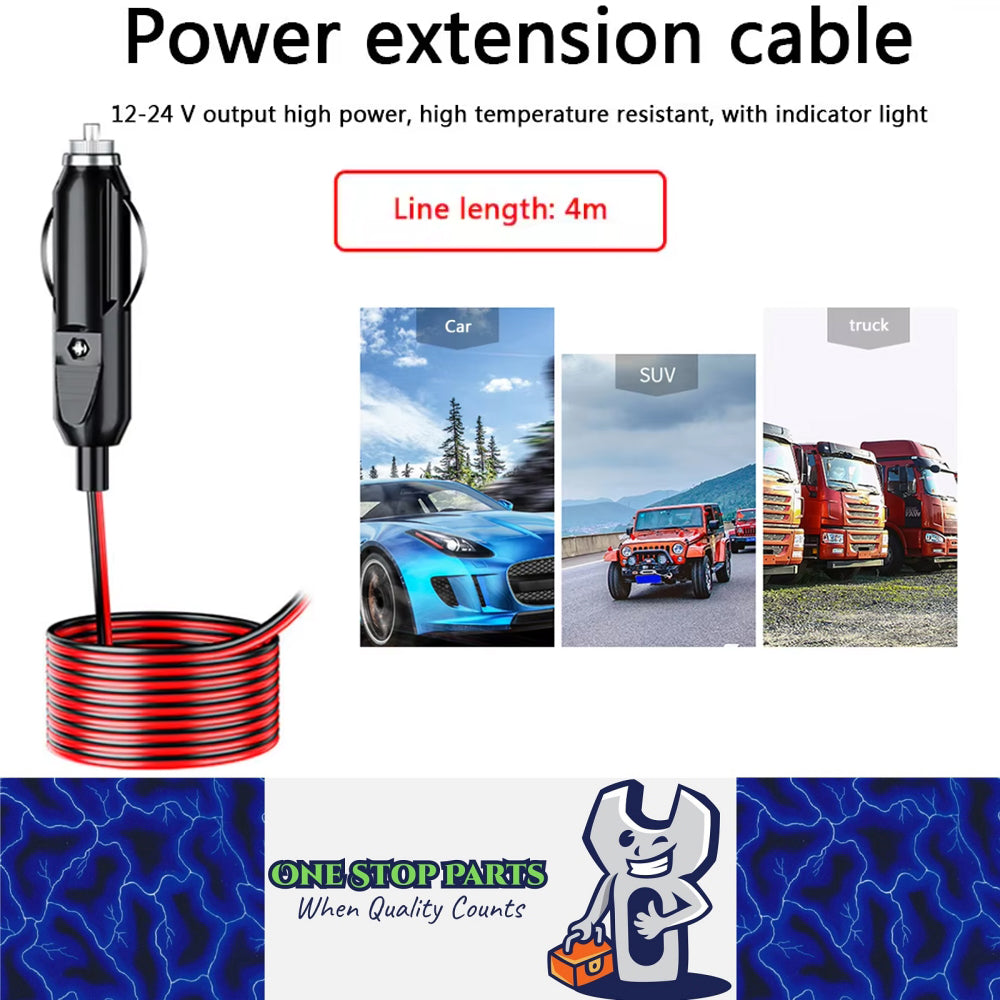 12V-24V Car Cigarette Lighter Plug Male Connector 20A Fused with 4M Wire
