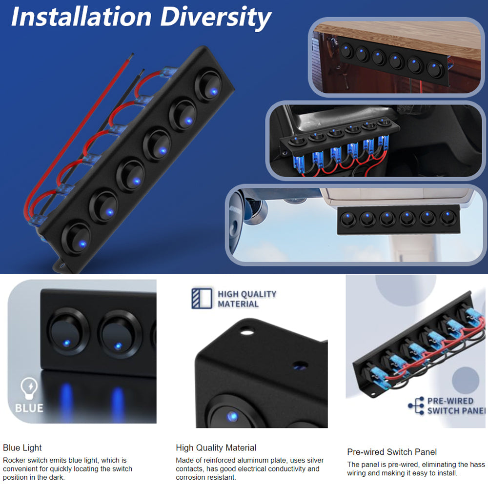 【Heavy Duty】This 12VDC 20A 3 pin blue LED switch panel control system can better control multiple circuits. Suitable for all types of circuit control.