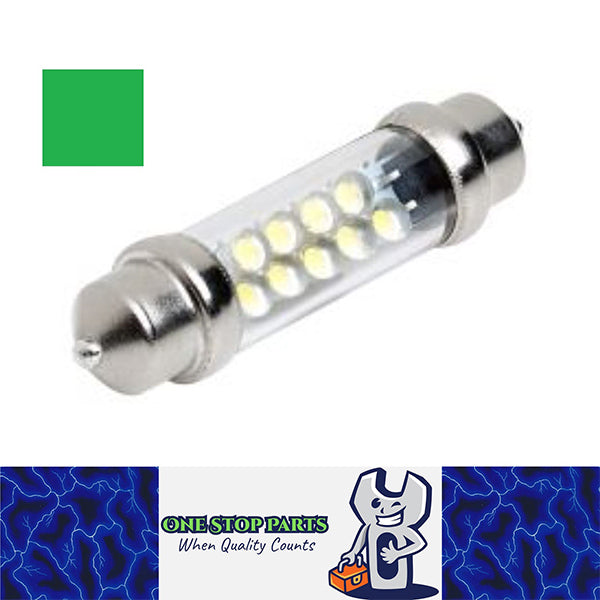 12V Green 43mm Festoon 9 LED FESTOON GLOBE 36 LUMENS FOR INTERIOR LIGHT GLOBE