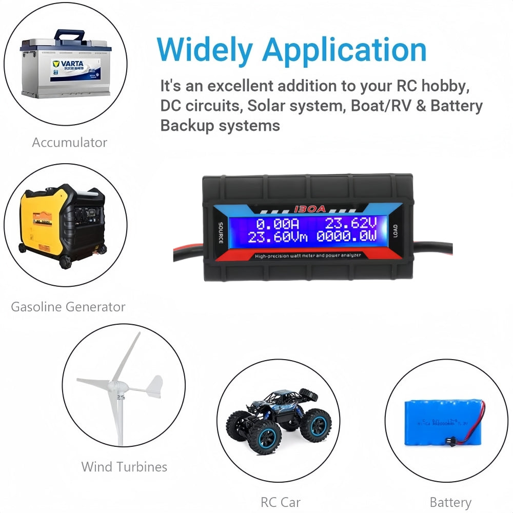 Here we have on offer is 130A Inline Watt Voltage Amp Meter Power Analyzer Performance Monitor With Connectors.