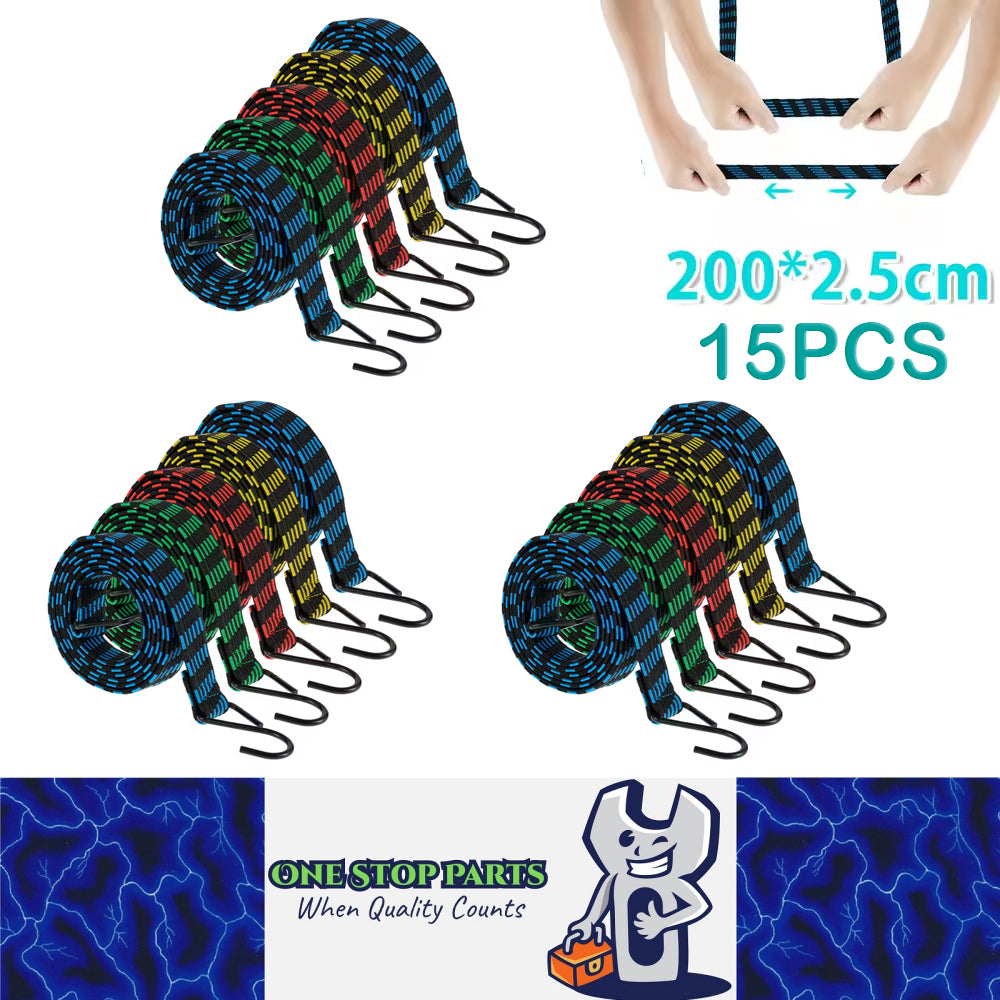 15 x 2M Bungee Cords Heavy Duty Luggage Bungee Straps with Hooks Elasticity Rope