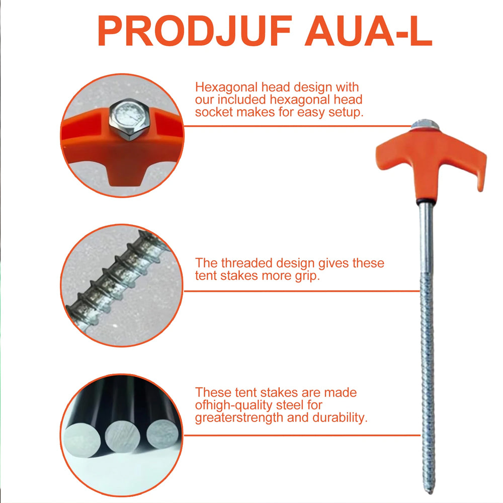【Preium Material】 —The screw in tent stakes are made of high-quality iron and plastic, It has a threaded end for easy insert and superior grip when drilling into various hard surfaces. With their innovative screw-in design, these tent stakes offer hassle-free setup. Simply twist them into the ground using a drill or by hand, saving you time and effort during campsite assembly.