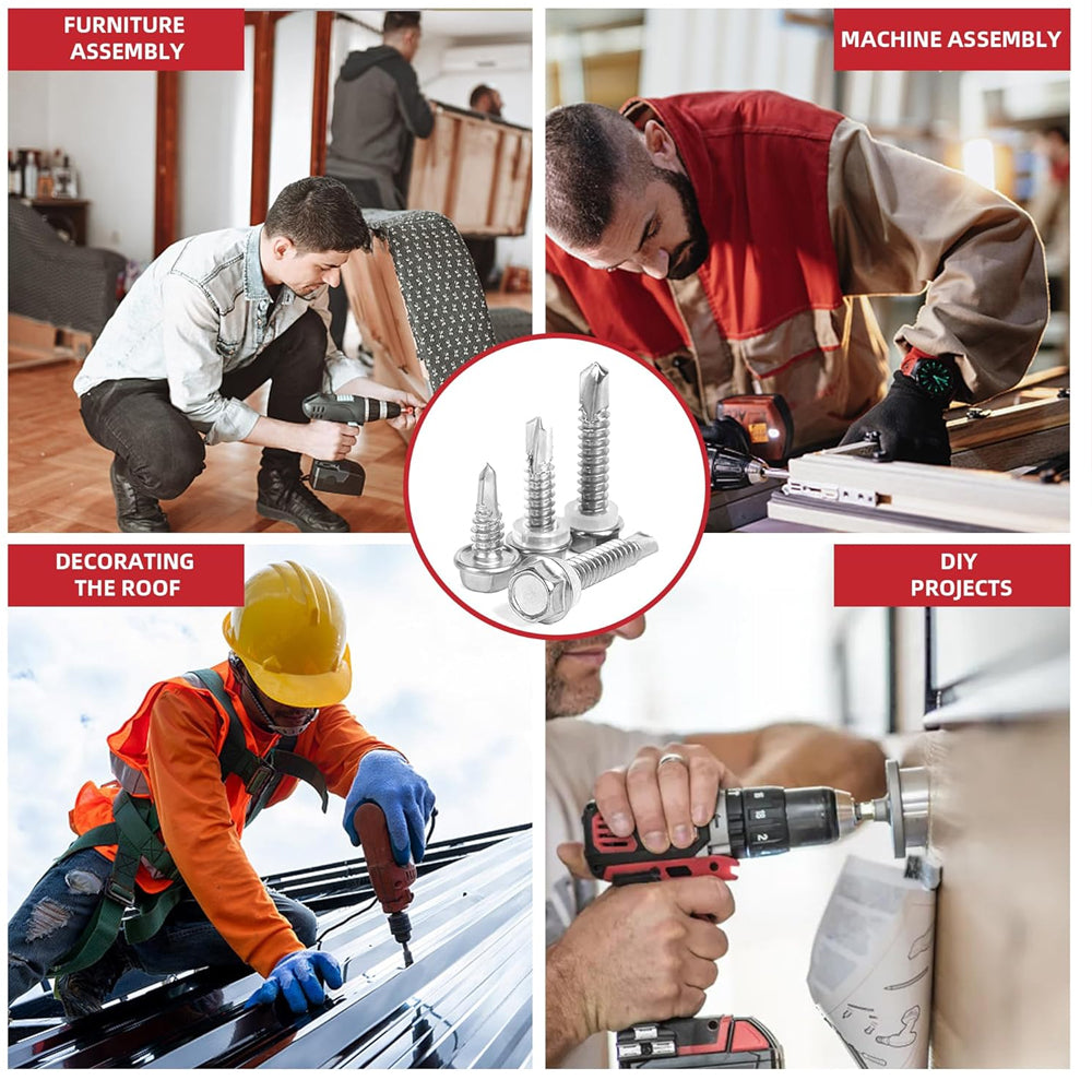 【Versatile Hex Washer Head Design】: Featuring a standard hex washer head, these screws facilitate effortless installation using compatible hex drivers. Their universal design makes them suitable for a wide array of applications, ensuring convenience and ease of use.