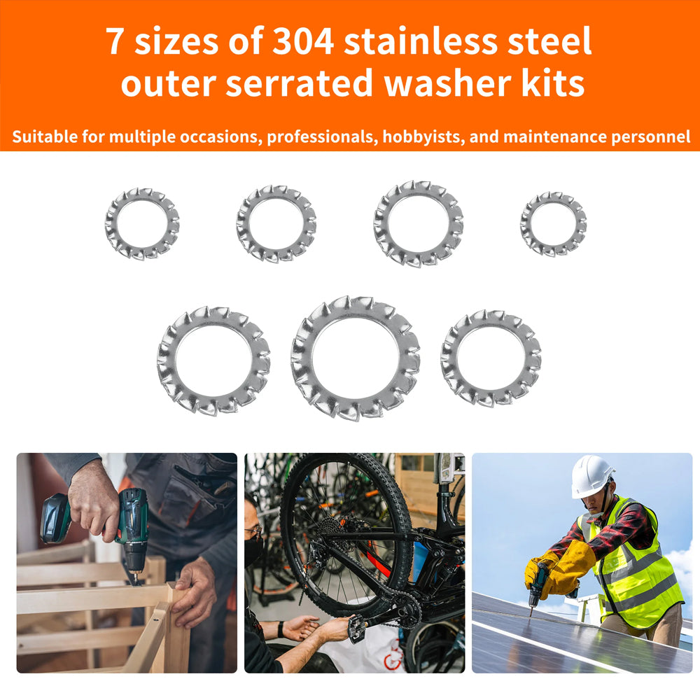 ✅[MATERIALS]: These serrated washers are made of 304 stainless steel material, which has high hardness and does not deform. They are suitable for indoor, outdoor, or humid environments, with fine craftsmanship, beautiful appearance, good corrosion resistance, long-lasting strength, and durability.