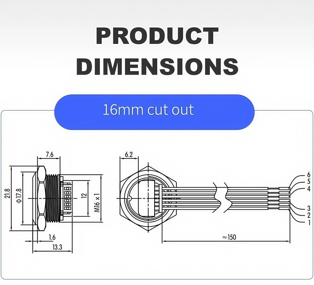Here we have 16mm Metal Push Button Switch Ultra Thin White LED 12-24V Pre-Wired Momentary Self-Reset Switch.