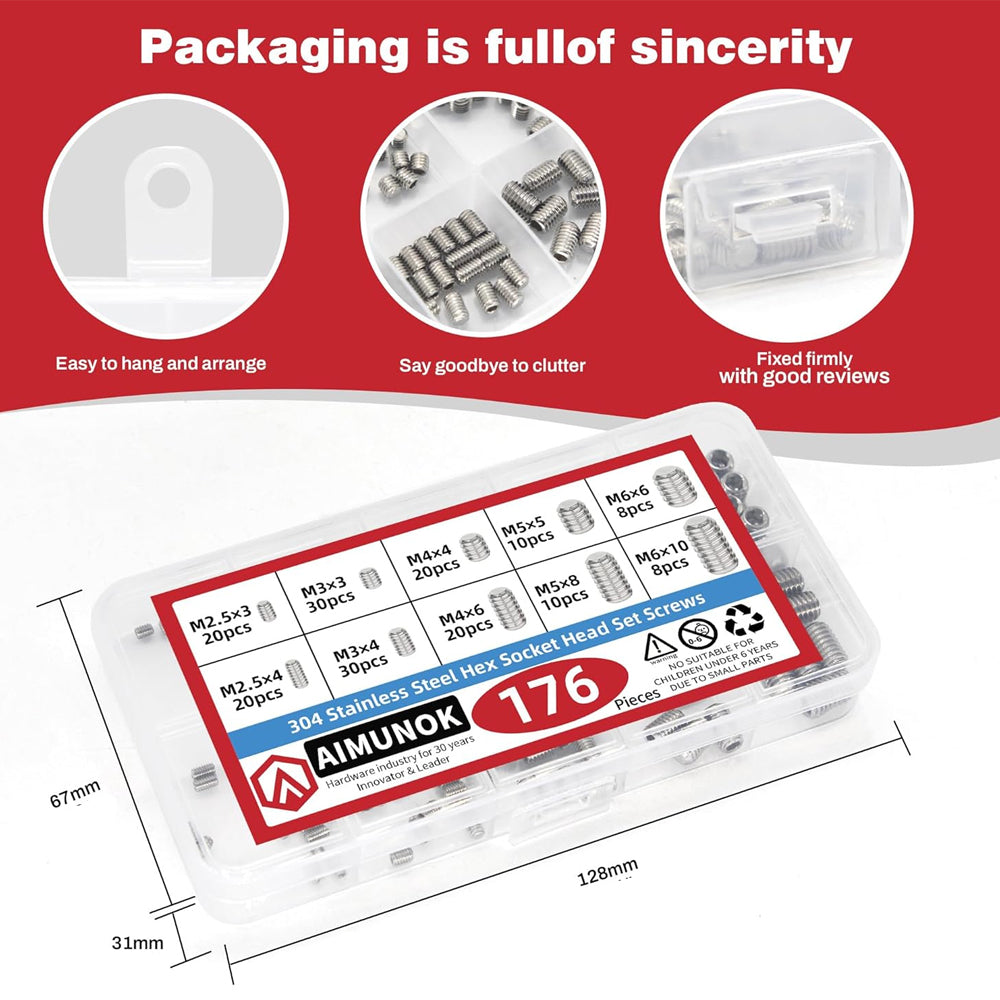 ✅【PACKAGING】176pcs Allen Head Hex Set Screws