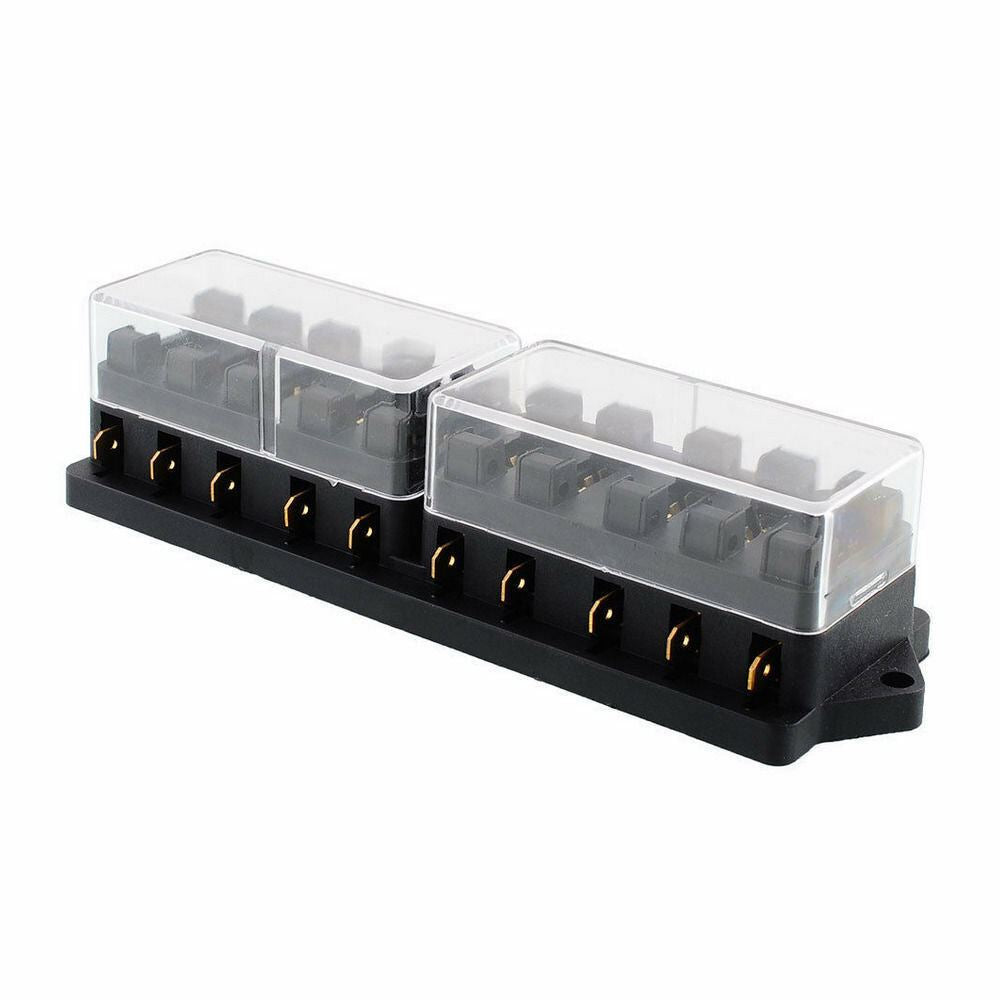 1pc 10 WAY FUSE HOLDER BLOCK TAKES 10 X STANDARD BLADE FUSES 12v / 24v