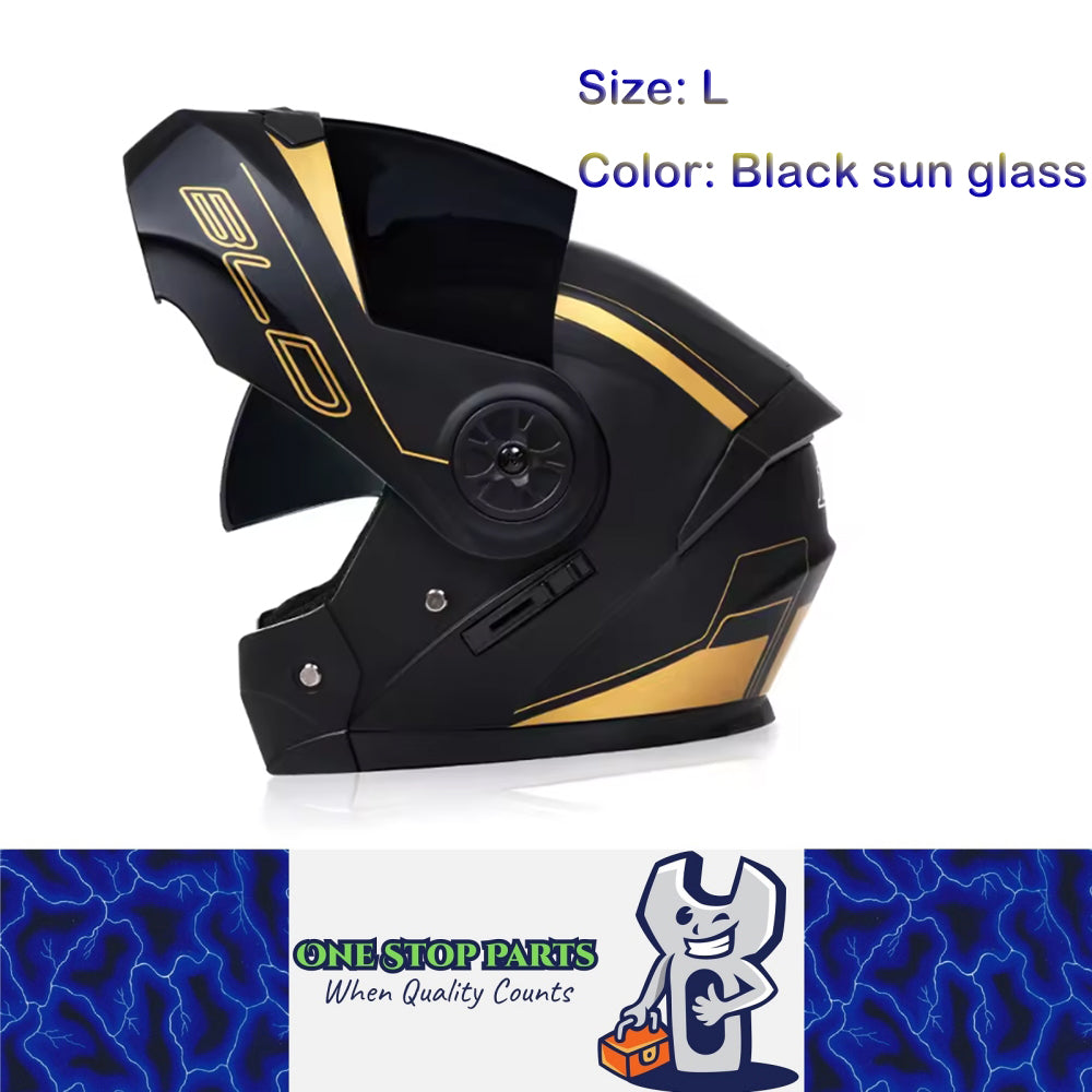 1x Black Size L Motorcycle Full Face Helmet Men Women Dual Lens Sun Glass Helmet
