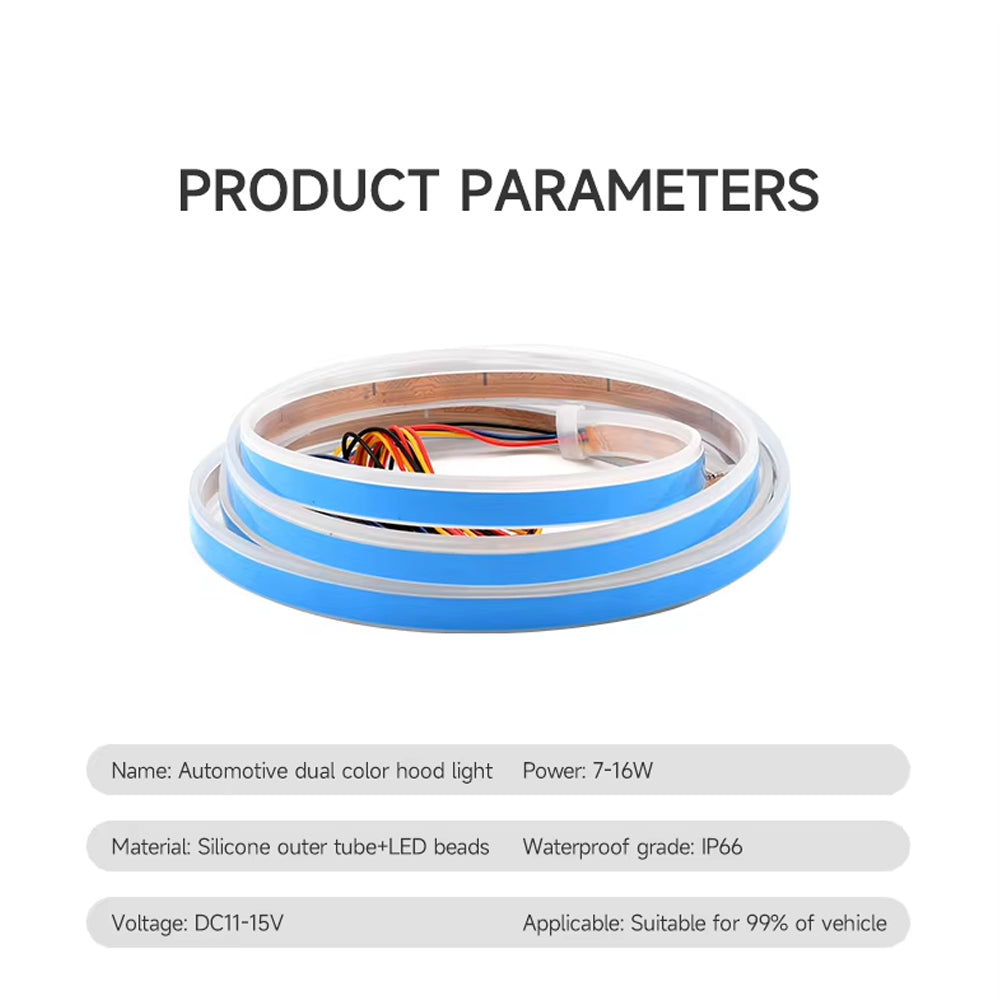 2.4m White LED Hood Strip Light Start Scan Dynamic DRL & Yellow Turn Signal Lamp
