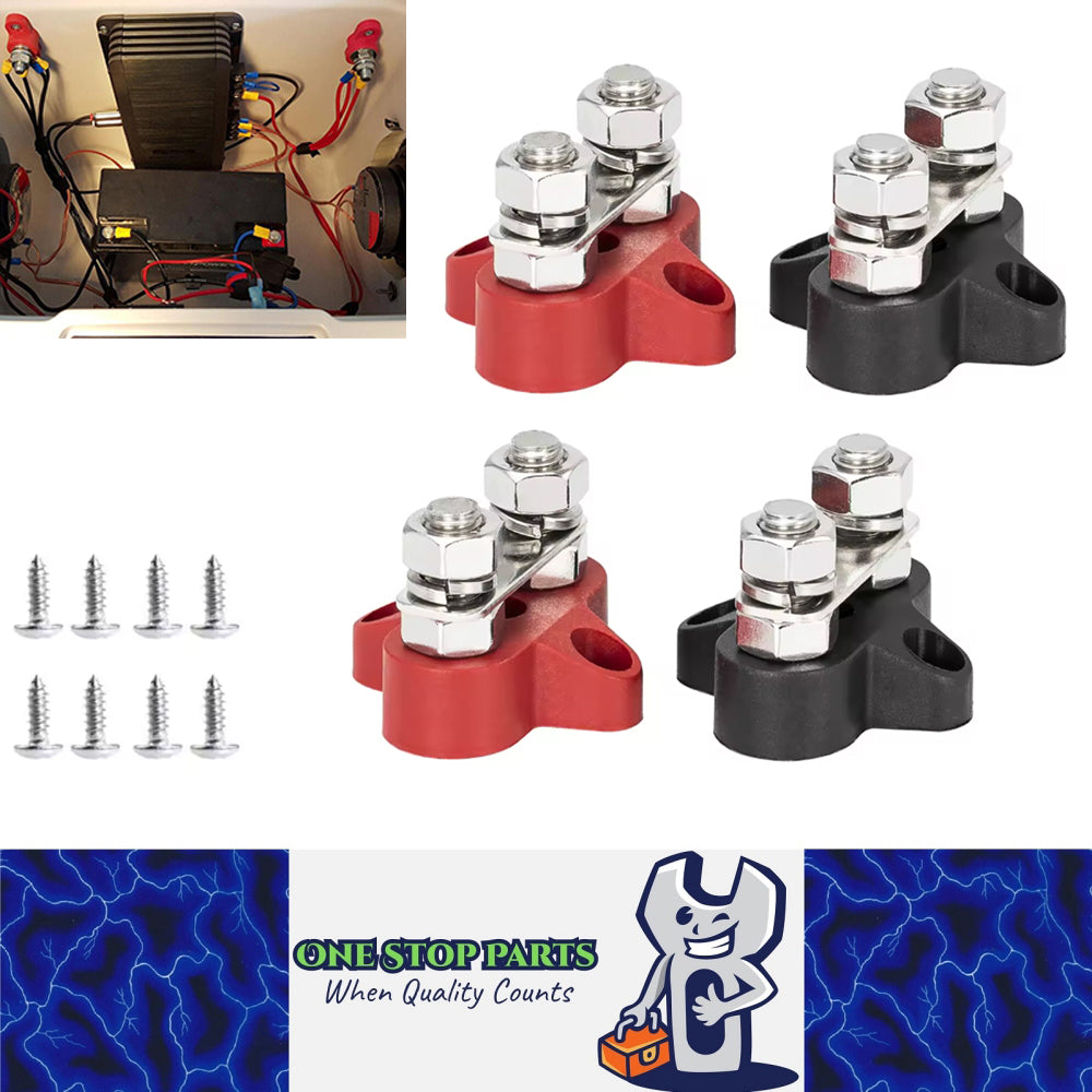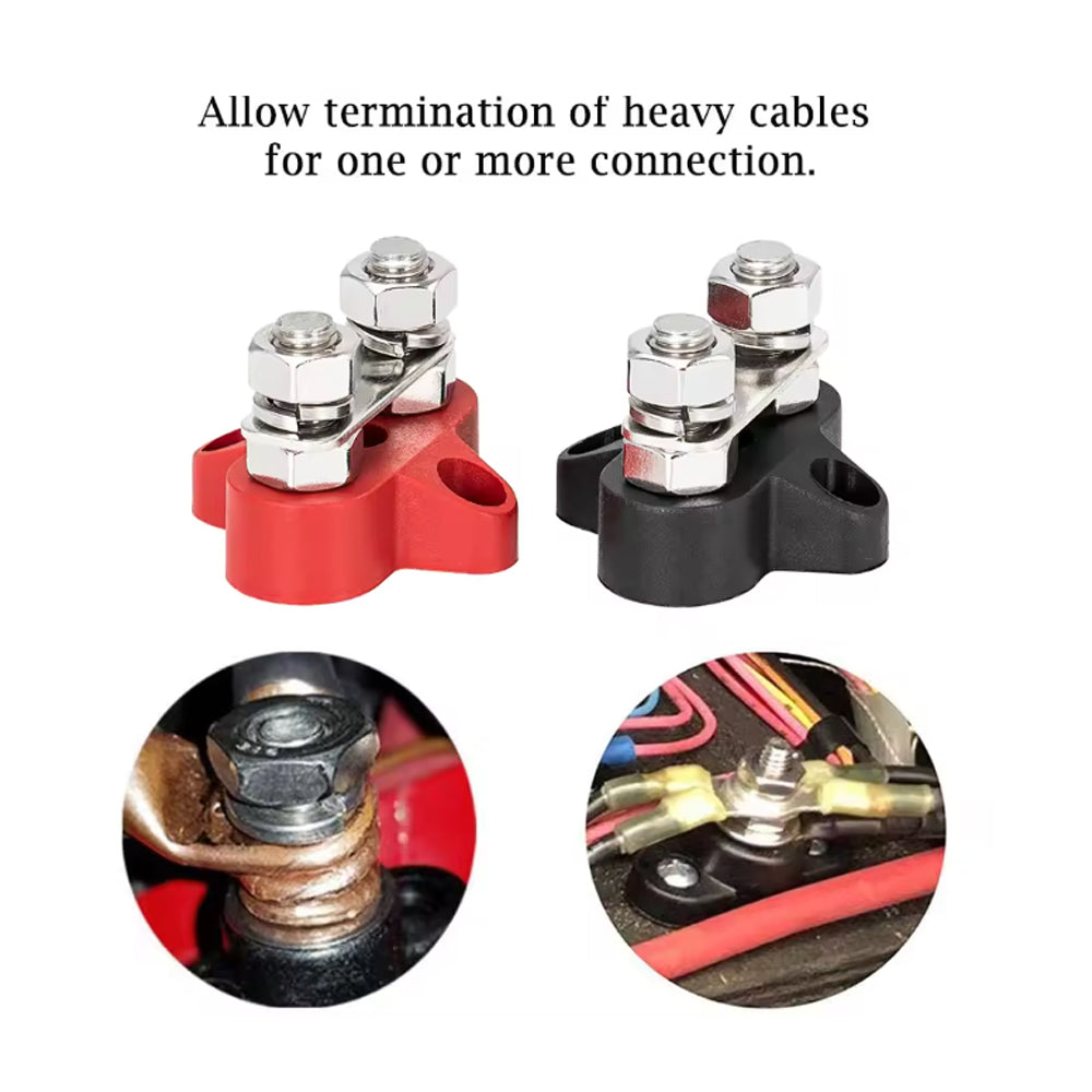 2 Pairs M8 Dual Terminal Block Stud 12-48V 80A Junction Power Distribution Block