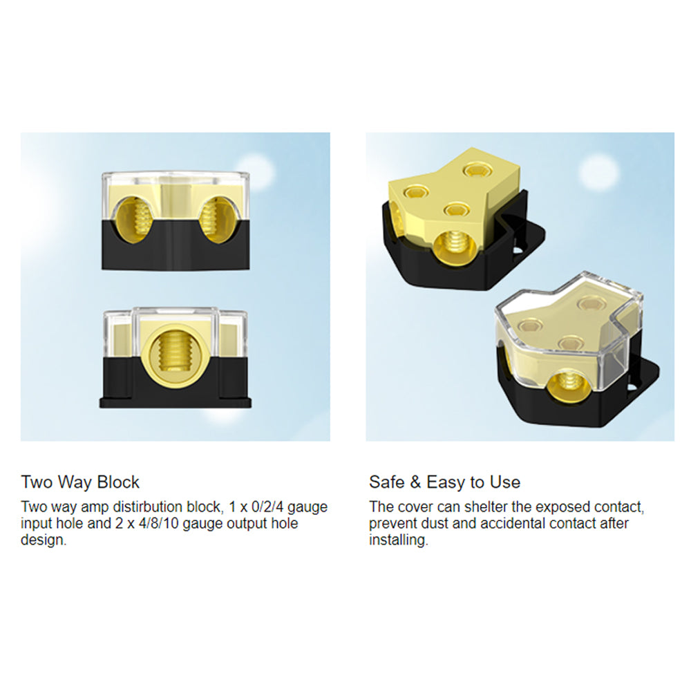 2 Way Power Distribution Block 0/2/4 AWG Gauge in 4/8/10 Gauge Out Car Audio