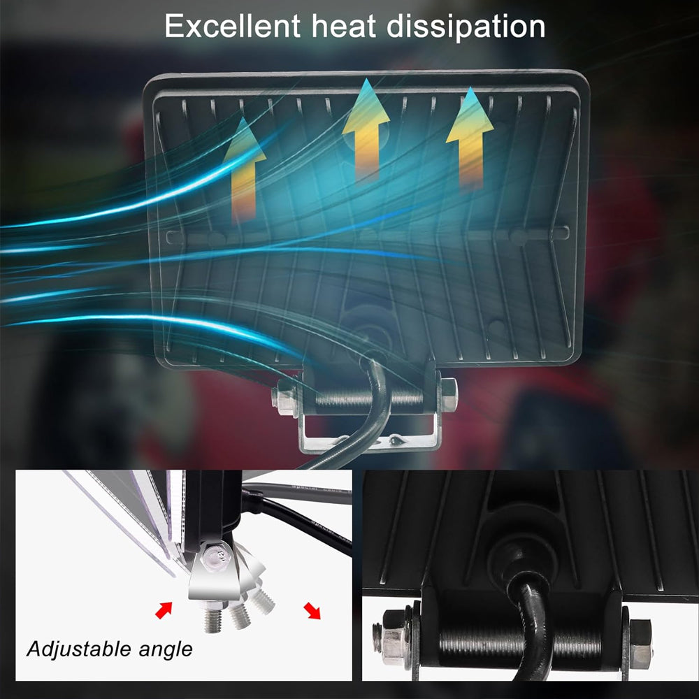 ★【Efficient Heat Dissipation】The work light LED has an internal heat sink and external heat dissipation fins to dissipate heat quickly and to the maximum. It does not overheat even when used for a long time, energy saving, long life, and durability of over 30,000 hours.