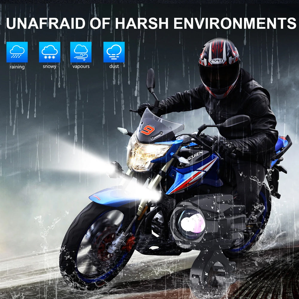 2 x 25W Motorcycle LED Headlight Fog Light 4 Light Modes Universal Moto Light