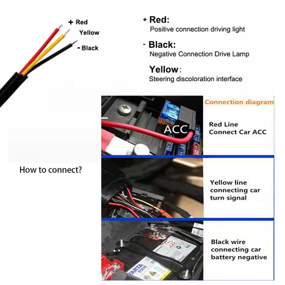*Red wire for white light , yellow wire for yellow light , black wire for negative wire.