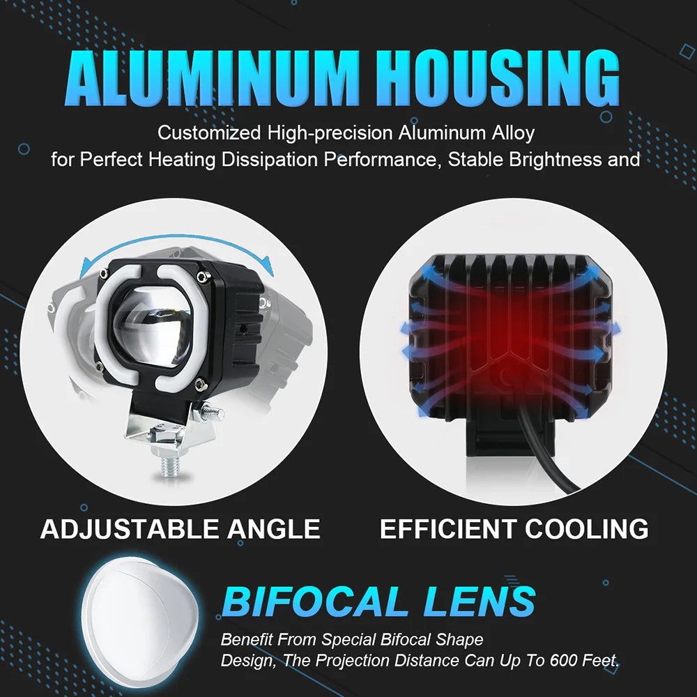 2 x 30W Motorcycle LED Headlight Fog Light Universal Moto Light with White DRL