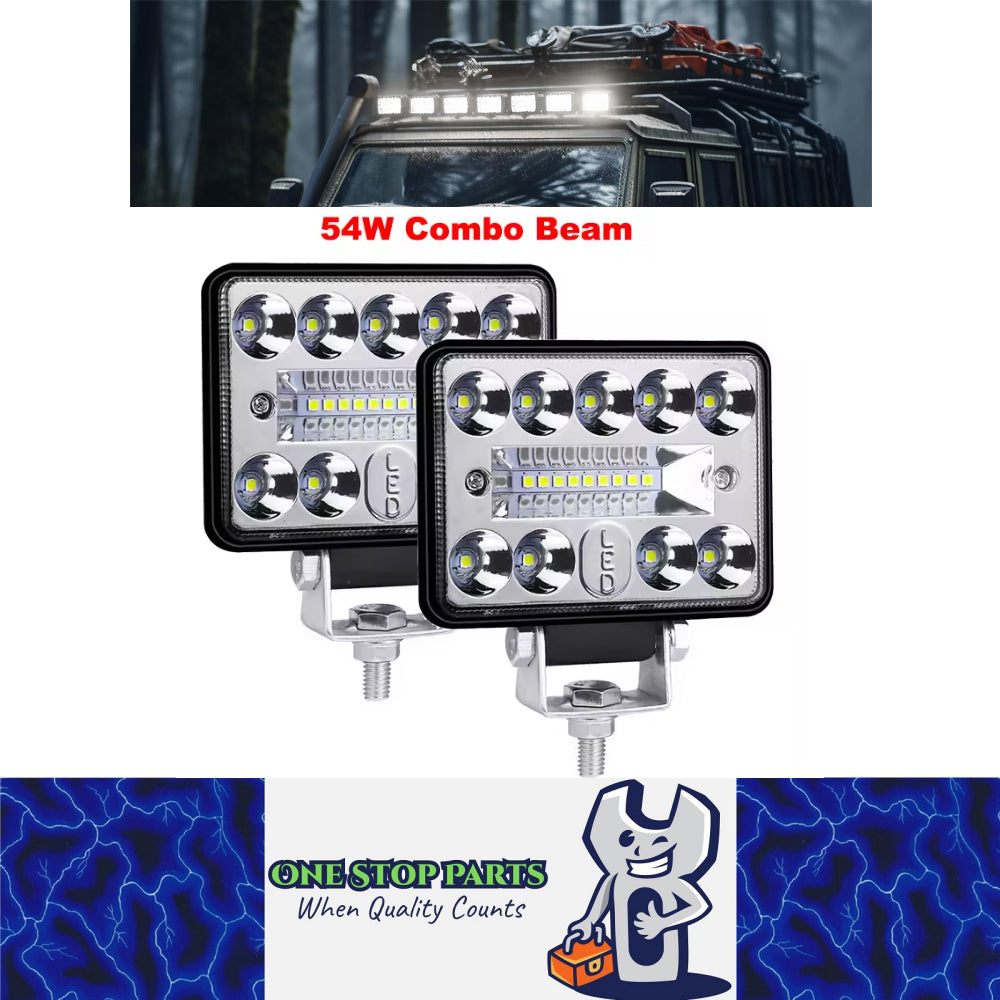 2 x 54W LED Work Light 102x76mm 12-24V 6000K Spot Flood Beam Combo Work Light