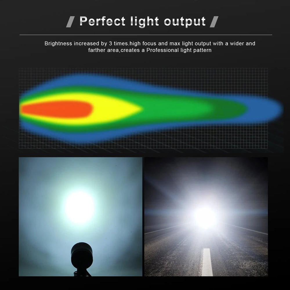 LED motorcycle headlights use 6pcs of light beads,60W(6pcs*10W intense CREE LED/each bulb),long range focused beam with 6000LM allows you to see far away, extremely bright even in the daytime.