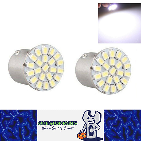 2 X BA15S 12V COOL WHITE 22SMD 135 LUMENS CARAVAN CAR BIKE BOAT LED GLOBE 2PCS