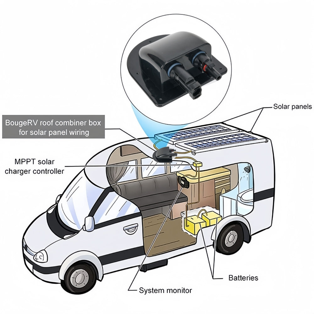 Here we have on offer are 2 x Black Waterproof Solar Panel Junction Box Ideal for Roof of Caravan (2pcs).