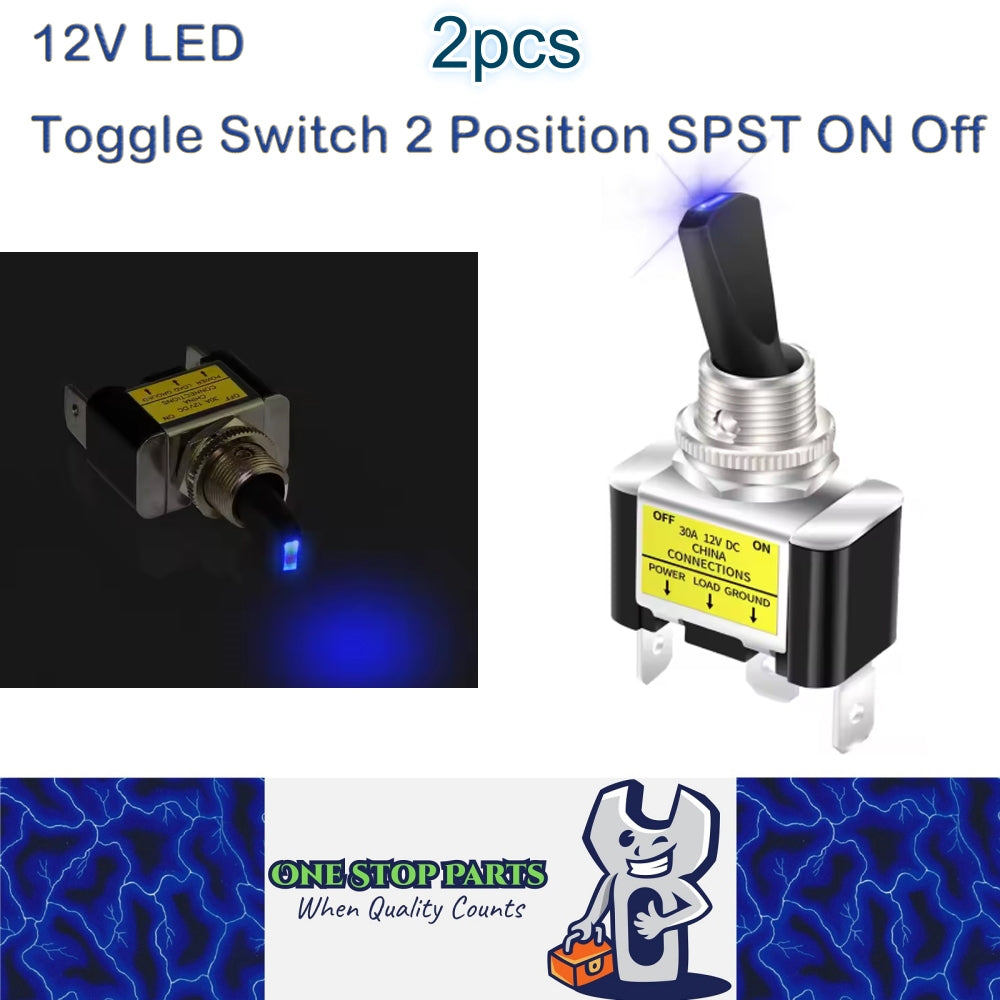 2 x Blue LED 30A 12V Toggle Switch 2 Position SPST ON Off Car Boat Toggle Switch