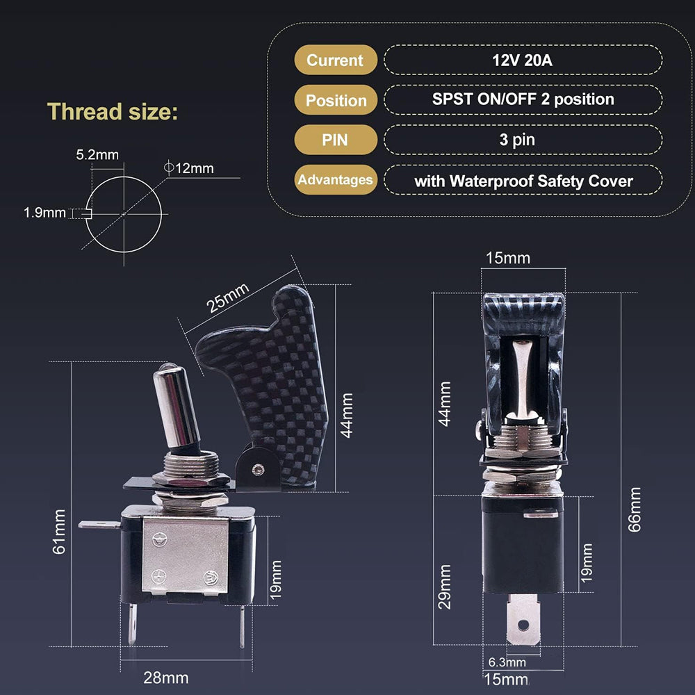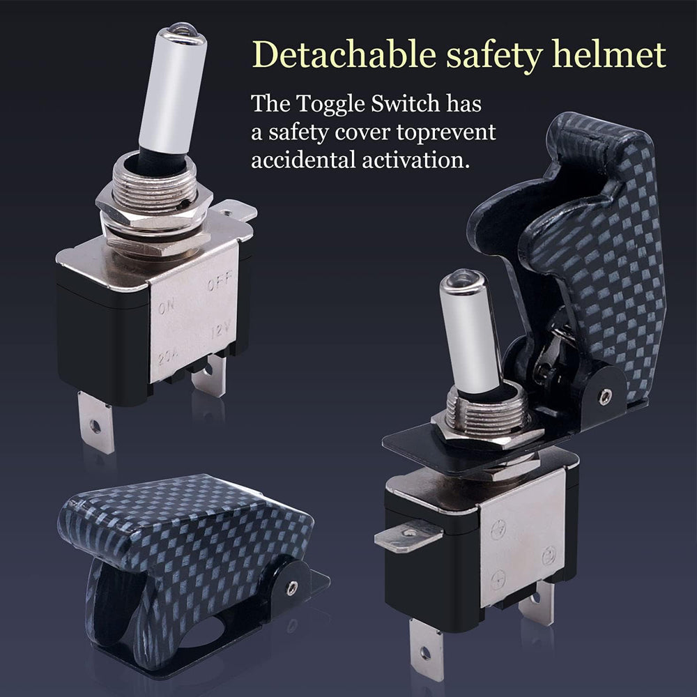 ·Safety cover: Perfect for custom wiring or switch replacement,The Toggle Switch has a Charcoal grey safety cover to prevent accidental activation.Blade-type terminals facilitate easy wiring and installation.