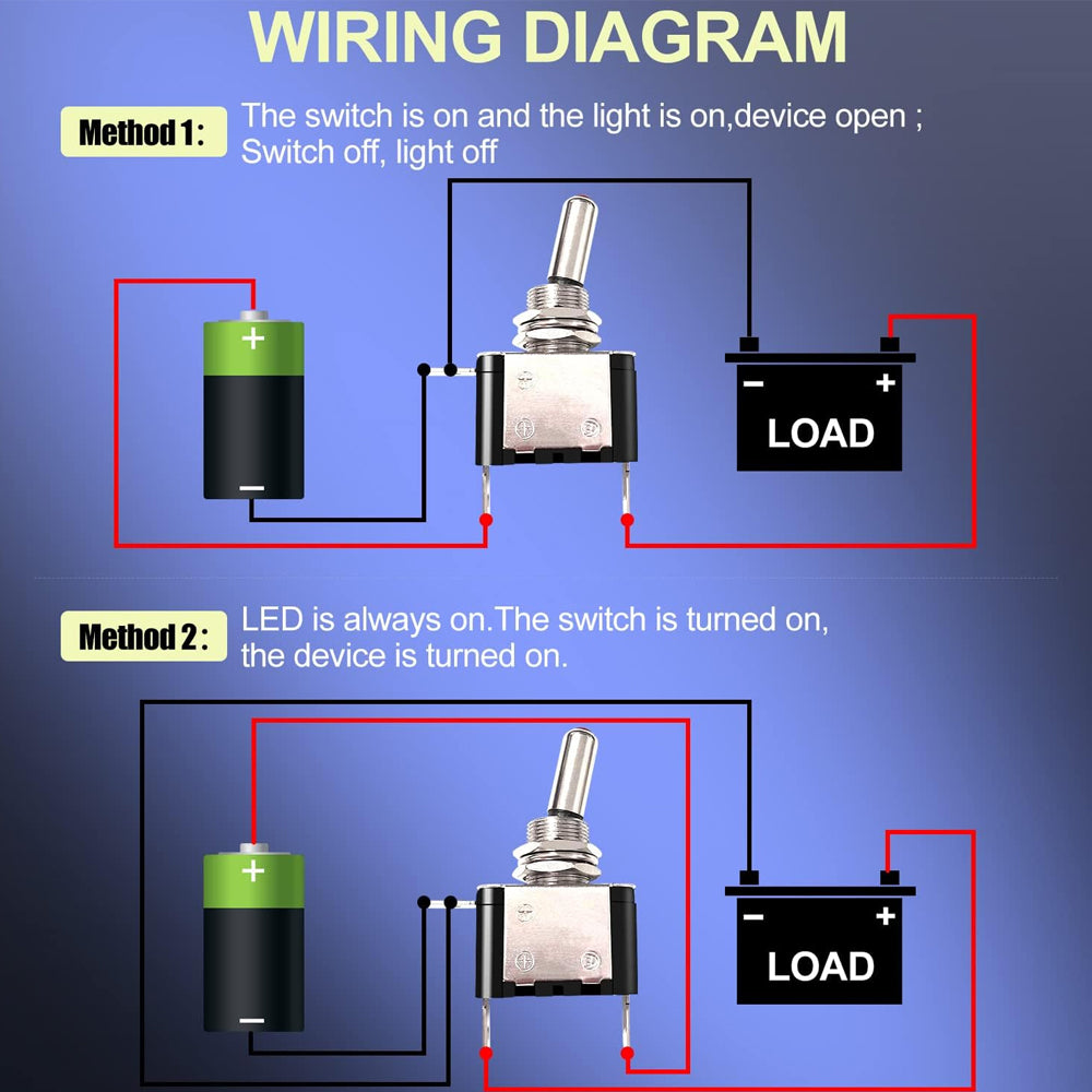 ·Feature: This illuminated toggle switch is made of metal and Bakelite with 20A 12V DC Heavy Duty Rating. The Blue LED will be illuminated When the switch is Turned ON.