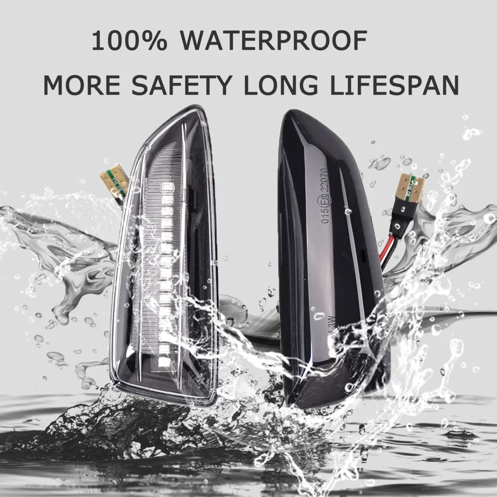 -Dynamic turn signal,scroll smoothly.Easier to be seen by other drivers when you are turning right/left.