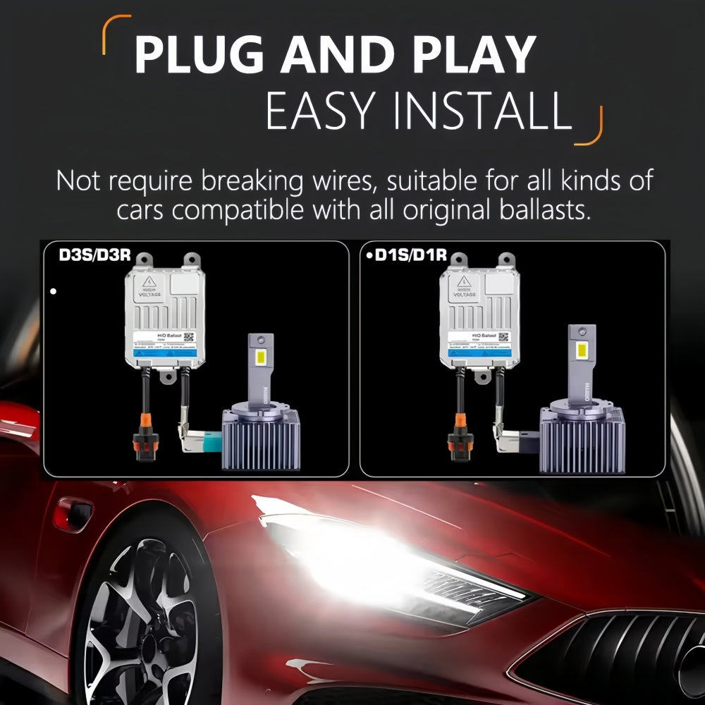 It's without ballast, 1:1 light point as original HID headlight, just plug and play, replace original xenon directly and work with the factory car ballast