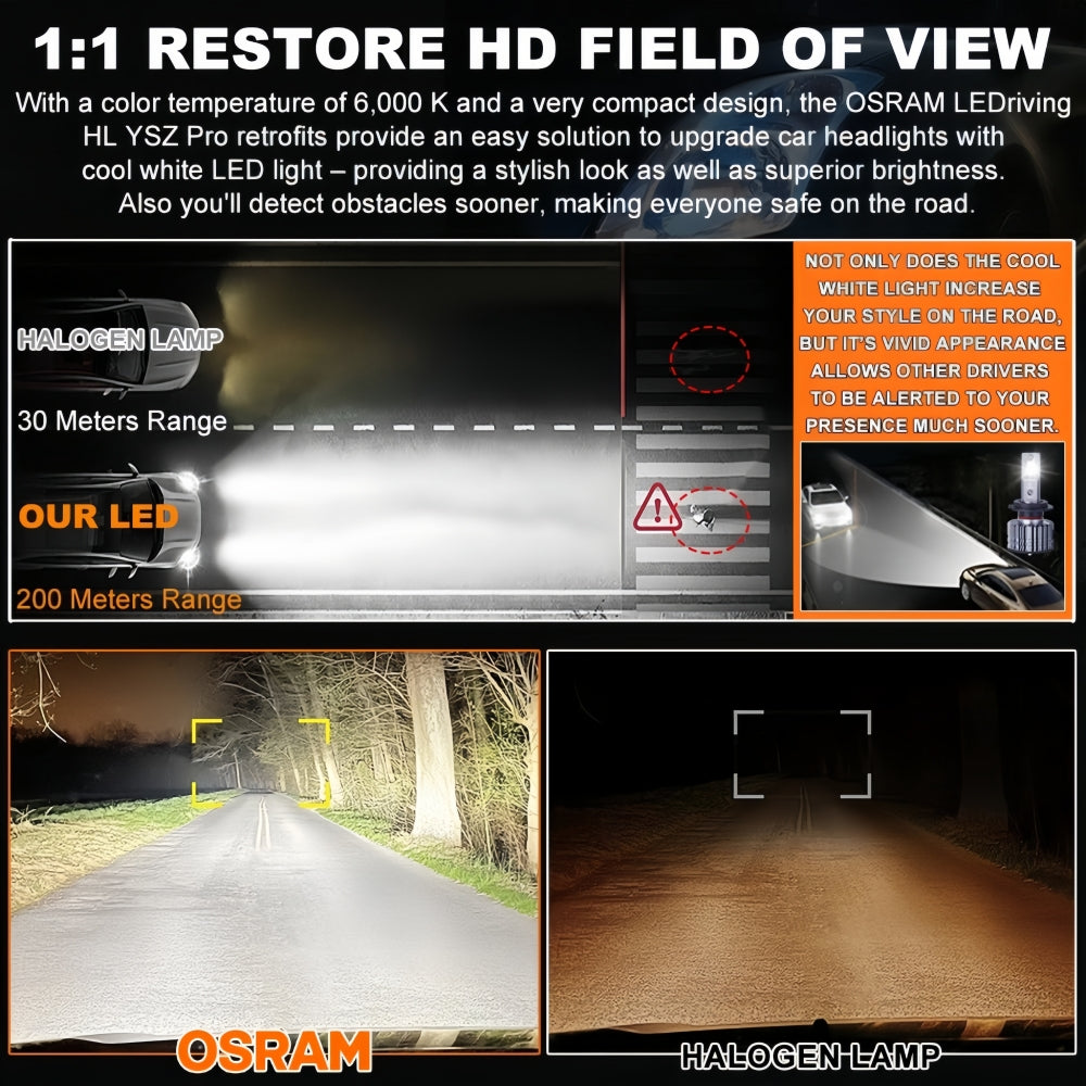 The LEDriving HL BRIGHT high and low beam lamps by OSRAM replace conventional halogen lamps and are 12V compatible. With the latest LED technology and very compact design, these lamps allow a high compatibility and an easy installation for cars with the respective halogen lamp types.