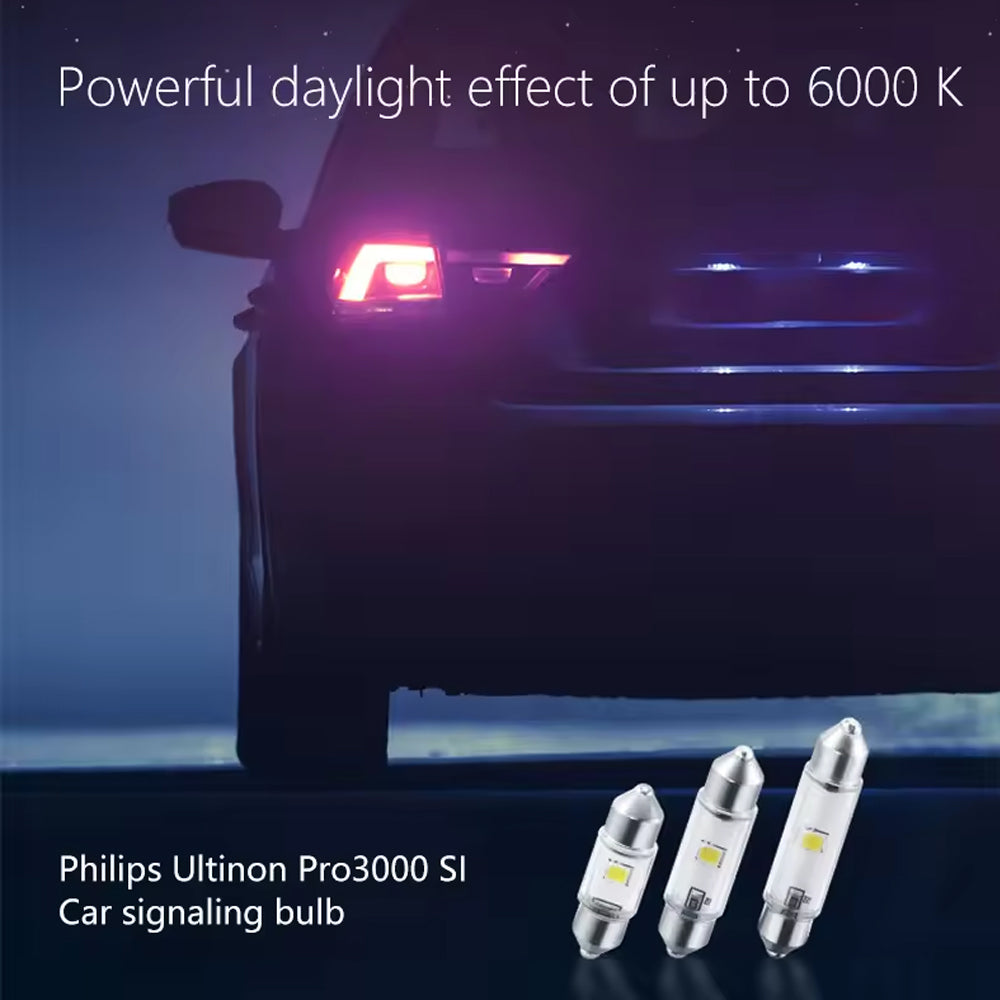 For a stylish drive, upgrade to Philips Ultinon Pro3000 LED for interior lighting. The strong 6000 K bright white light illuminates the inside of your car, while being kind to your eyes.