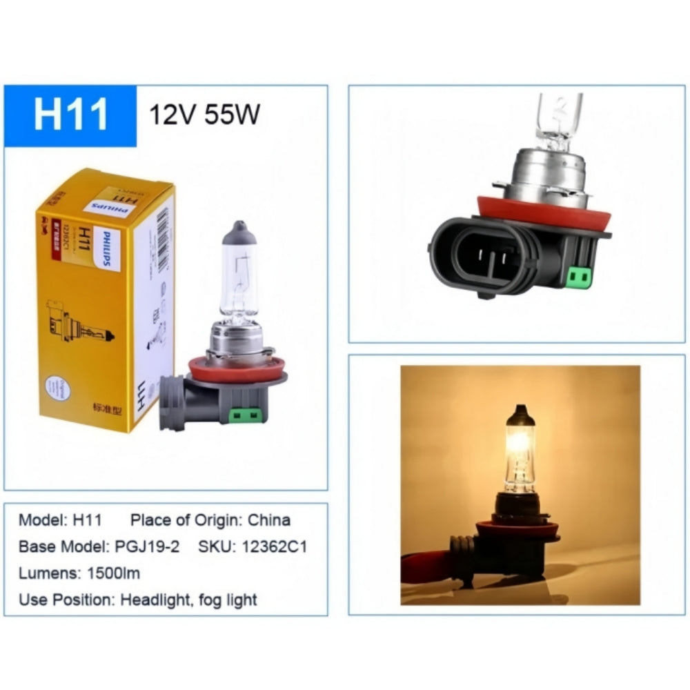 Here we offer 2 x PHILIPS H11 12V 55W Super Bright Halogen Globes 3200k Original Headlights (2PCS).