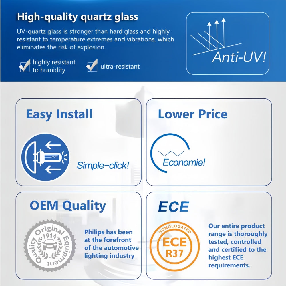 If you're looking for headlight bulbs that produce a little more light on the road but don't break the bank you should definitely consider the Philips Standard series. The headlight bulb offers more light than a standard halogen, so if the time has come to replace your headlight bulbs, choose Philips Standard for enhanced performance with an affordable price tag.