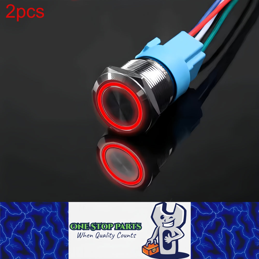 2 x Red LED 16mm Metal Push Button Switch 12V-24V Pre-Wired Self-Rest Switch