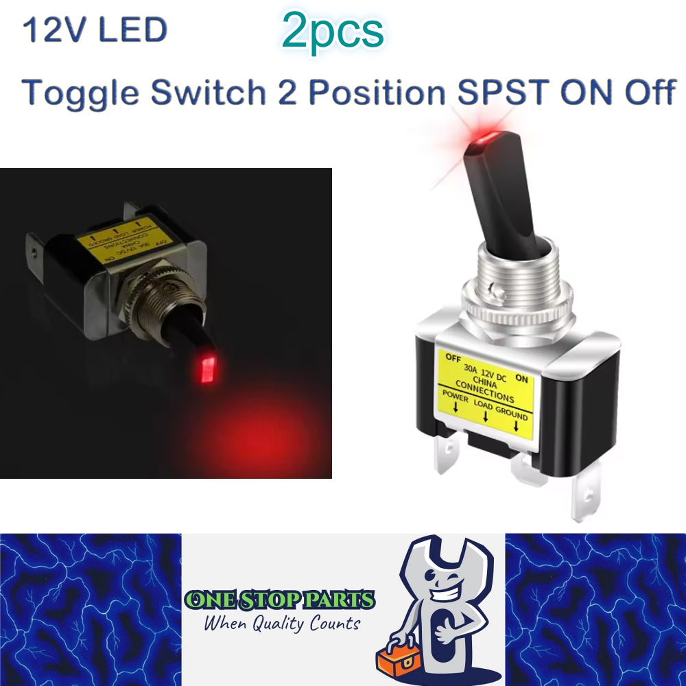 2 x Red LED 30A 12V Toggle Switch 2 Position SPST ON Off Car Boat Toggle Switch