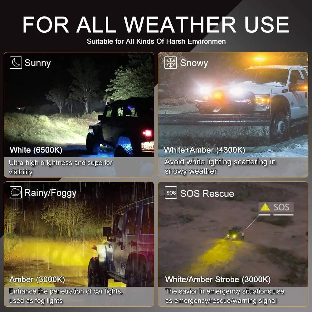 ●3 Color Modes: 6000k White / 3500k Amber / White+Amber
