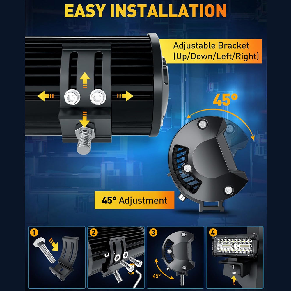 [Super Bright Off Road Lights] - The led bar provides 240w, 24000lm and 6500k white light, with an outstanding light transmittance of up to 97%, covering a wider area, making the vision of the road clearer and broader. The 45° adjustable irradiation bracket makes changing direction of light beam easier. Effectively ensure your safety and realize fast cross-country at night.