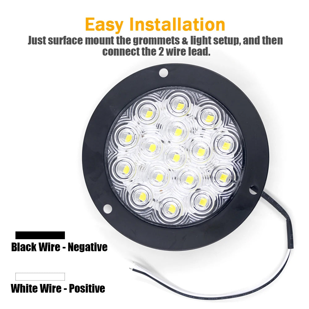 2 x White LED Rear Light Round 136mm 12-24V Reverse Lamp Tail Lamp Trailer Truck