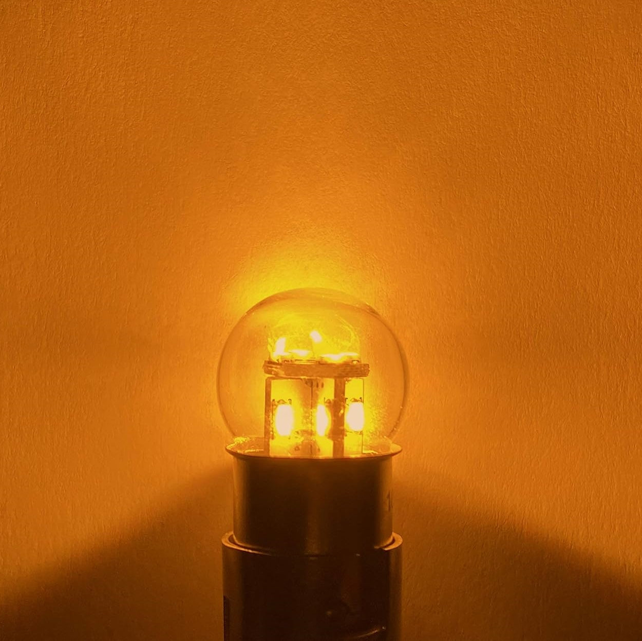 Here we have 2 x Yellow G18 BA15S 1156 6V 12SMD 100LM LED Globes (2pcs) with a good even spread of light