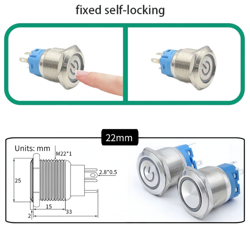 Constructed from robust metal, this switch is built to withstand the demands of both residential and commercial settings. Its durable construction ensures longevity and reliability, making it an ideal choice for environments where performance is paramount. The switch's momentary/latching functionality allows for versatility in operation, catering to different user preferences. Whether you need a switch that automatically resets or one that locks in position, this push button switch offers both options to suit your specific requirements.