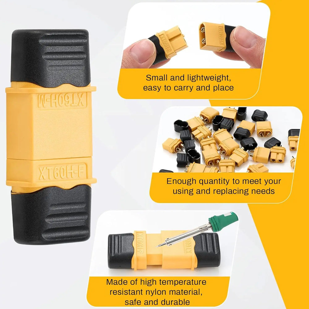 【High Temperature Resistance Nylon Material】XT-60 plug female and male connector has tight connection which easy to connect and disconnect. Perfectly replaced USB connectors & Deans Connectors, it's not easy to generate heat and have long performance life.