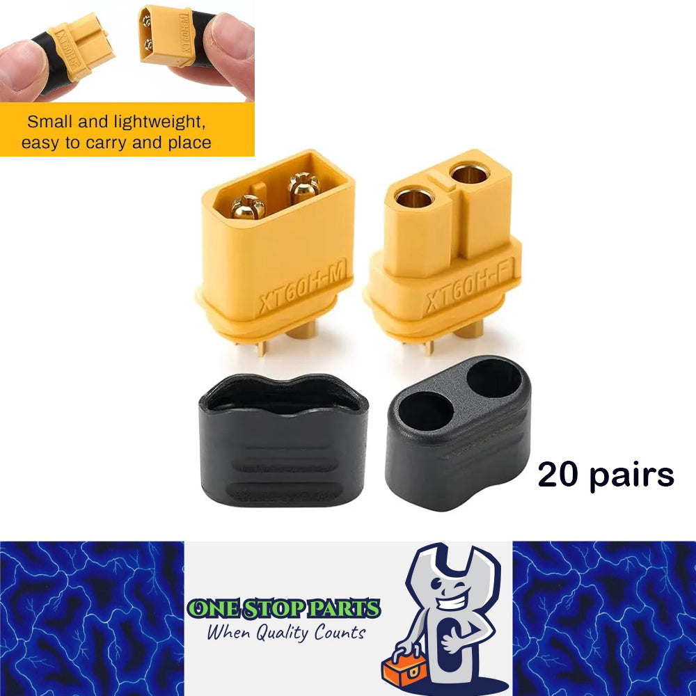 20 pairs Female and male XT60H Connectors, 20 pieces male connectors and 20 pieces female connectors with 40 pieces pipe sleeves in the package, altogether 80 pieces, abundant quantity for you to use and replace.