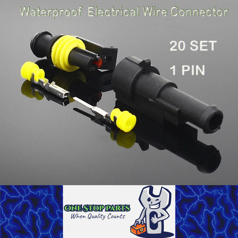 20 Sets 1 Pin Way AMP Waterproof Connector Car Electrical Wire Connectors Plugs