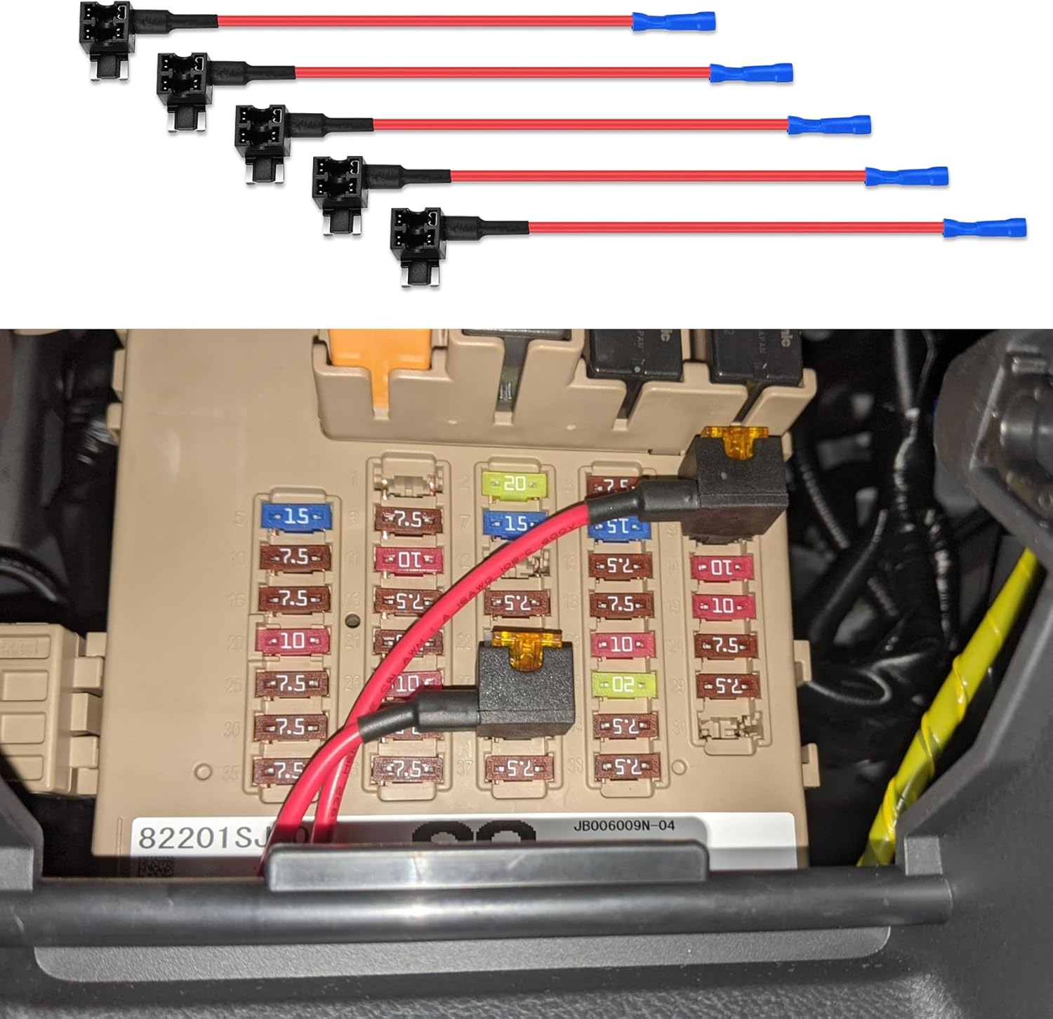 [Dual-slot fuse holder]: This standard add-a-circuit fuse tap adapter provides one fuse holder to protect the existing circuit anda second fuse holder to protect the new circuit. Fuse holder designed to intercept an existing 12V circuit at your fuse box location by adding an additional circuit without the need to cut, splice, or alter your (OEM) original equipment from the manufacturer.