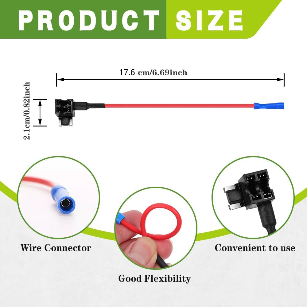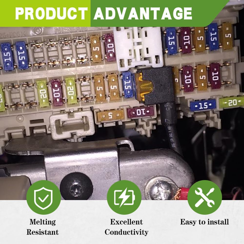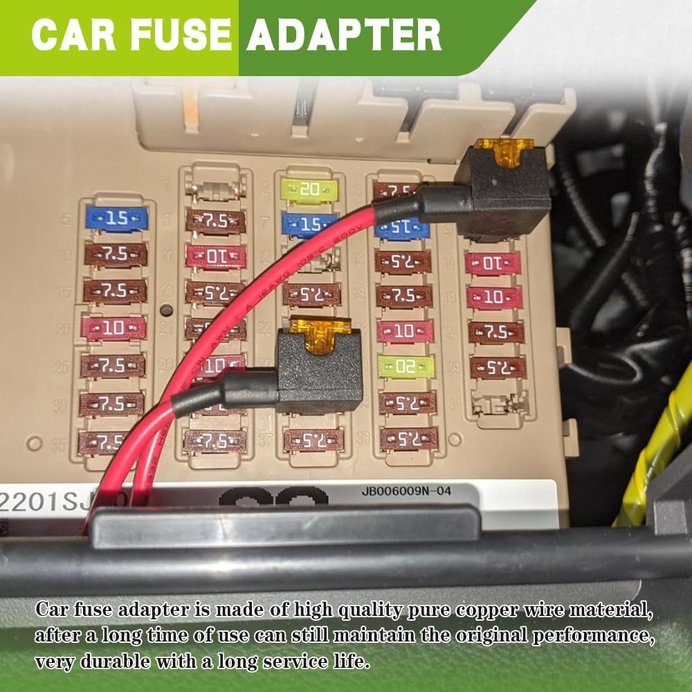[High quality material]: Car fuse adapter is made of high quality pure copper wire material, good bending performance, good melting resistance, good electrical conductivity, practicality, can be used with confidence, after a long time of use can still maintain the original performance, very durable with a long service life.
