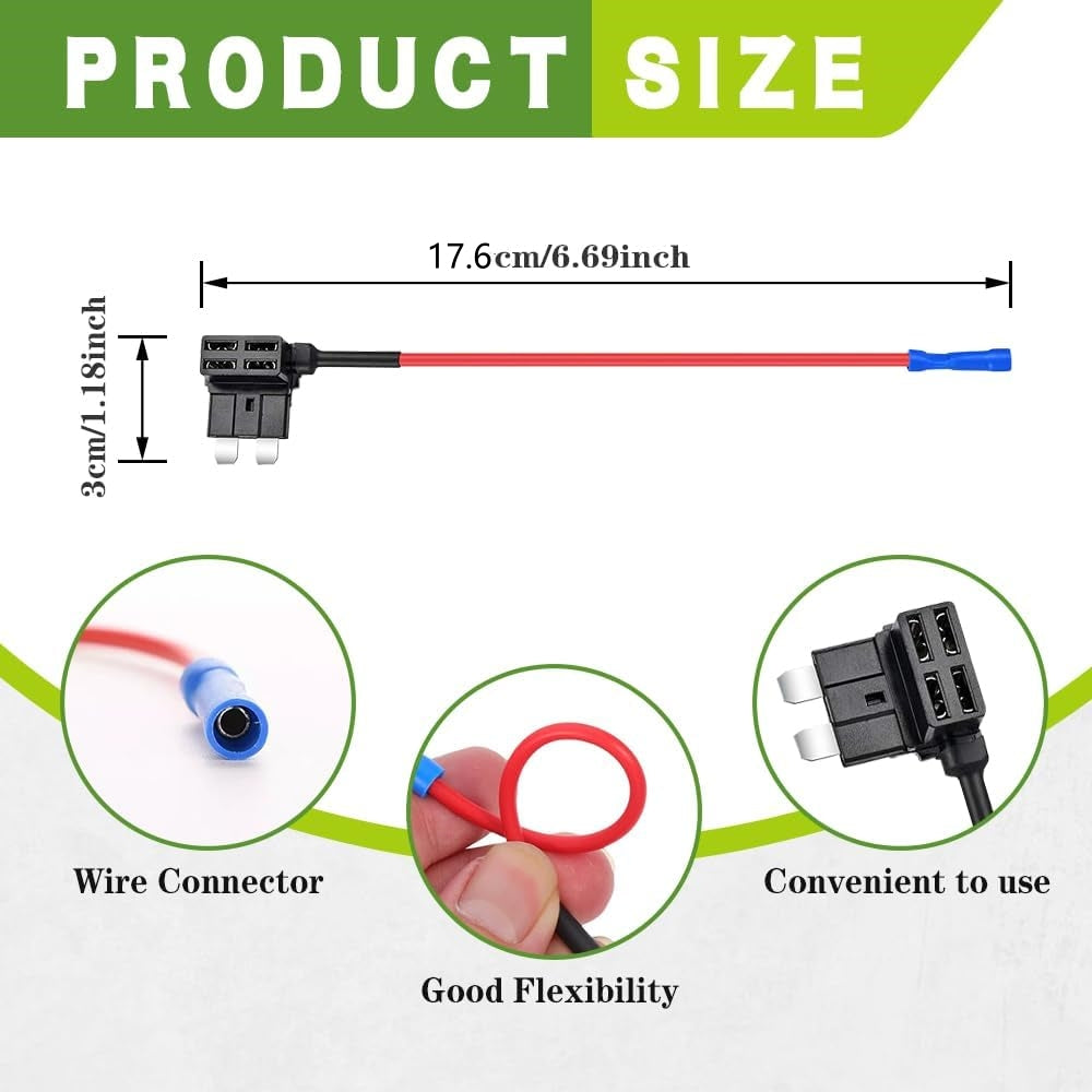[Scope of use]: Automotive Fuse Tap is Standard model, this Fuse Holder is widely used in cars, SUVs, ATVs, trucks, motorcycles, boats and so on. 12V car add-a circuit fuse TAP adapter is used for automotive and non-automotive or other electronic devices that require a direct connection to the fuse box. Perfect for car alarm, cell phone charger, GPS, DVD player, dash cam, etc.