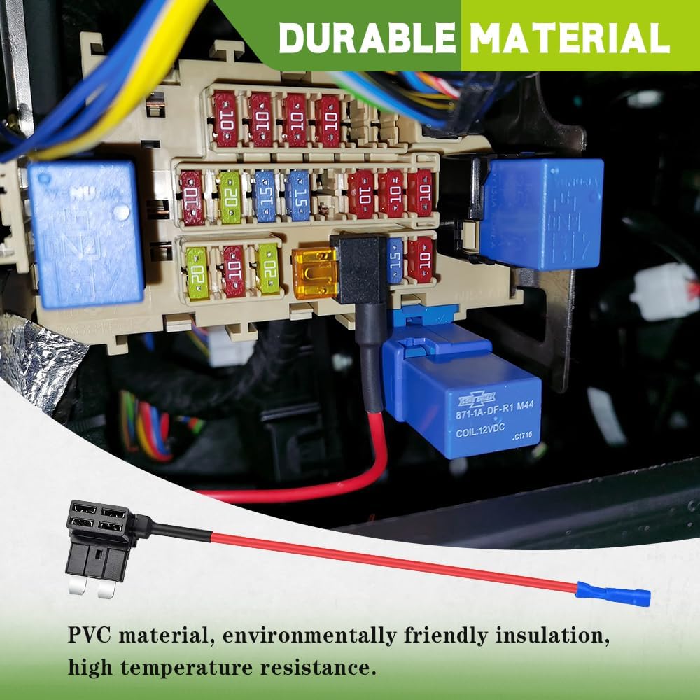 [Dual-slot fuse holder]: This standard add-a-circuit fuse tap adapter provides one fuse holder to protect the existing circuit anda second fuse holder to protect the new circuit. Fuse holder designed to intercept an existing 12V circuit at your fuse box location by adding an additional circuit without the need to cut, splice, or alter your (OEM) original equipment from the manufacturer.